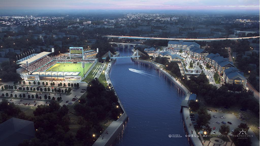 On December 2, 2019 a major economic development program was announced to revitalize the Pawtucket, Rhode Island riverfront. Anchoring the project is a 7,500 seat soccer stadium to house a USL Championship club, playing in the second tier of American soccer beneath Major League Soccer.